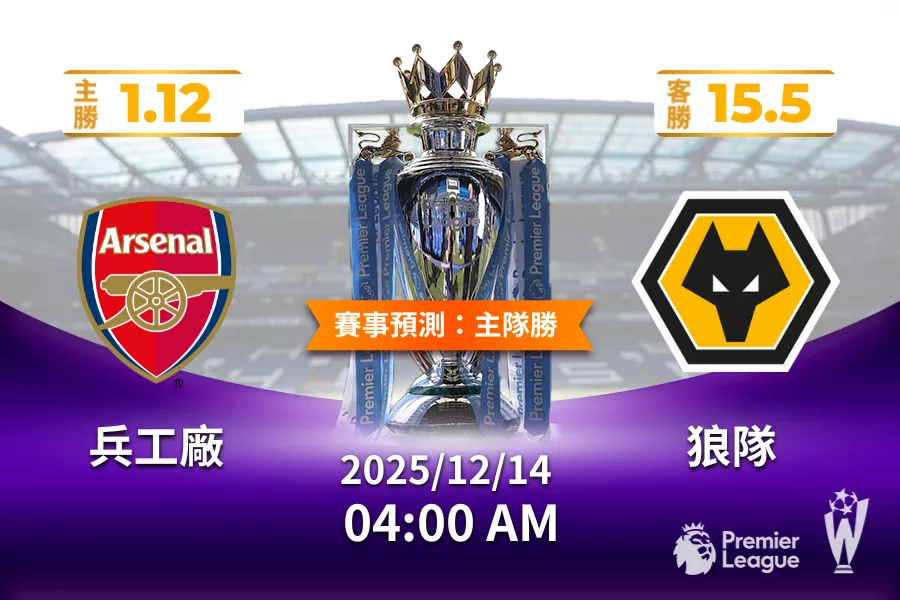 英超 | 兵工廠 vs 狼隊 2025 年 12 月 14 日