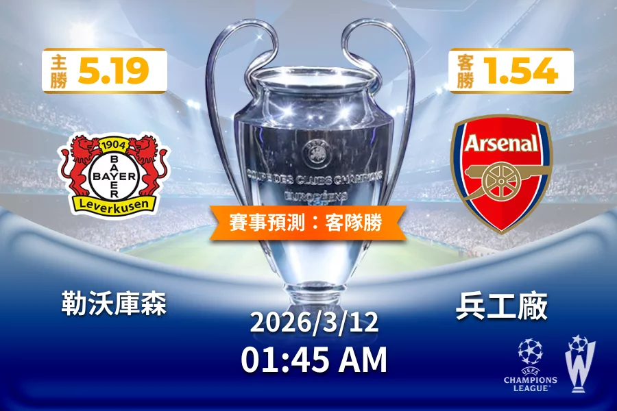 歐冠 | 勒沃庫森 vs 兵工廠 03月12日