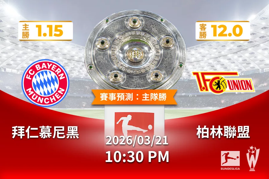 2026年03月 21日 德甲 拜仁慕尼黑 vs 柏林聯盟 賠率