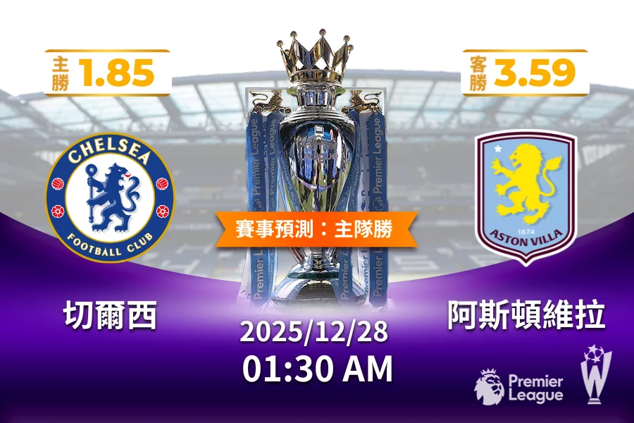 英超 | 切爾西 vs 阿斯頓維拉 2025 年 12 月 28 日