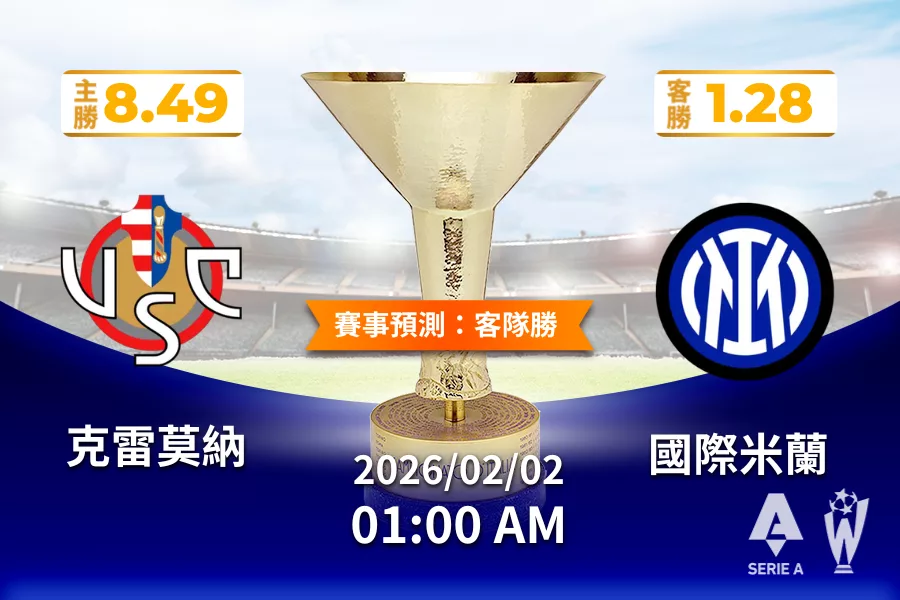 2026年02月 02日 義甲 克雷莫納 vs 國際米蘭 賠率