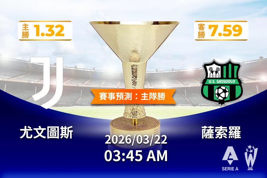 2026年03月 22日 義甲 尤文圖斯 vs 薩索羅 賠率
