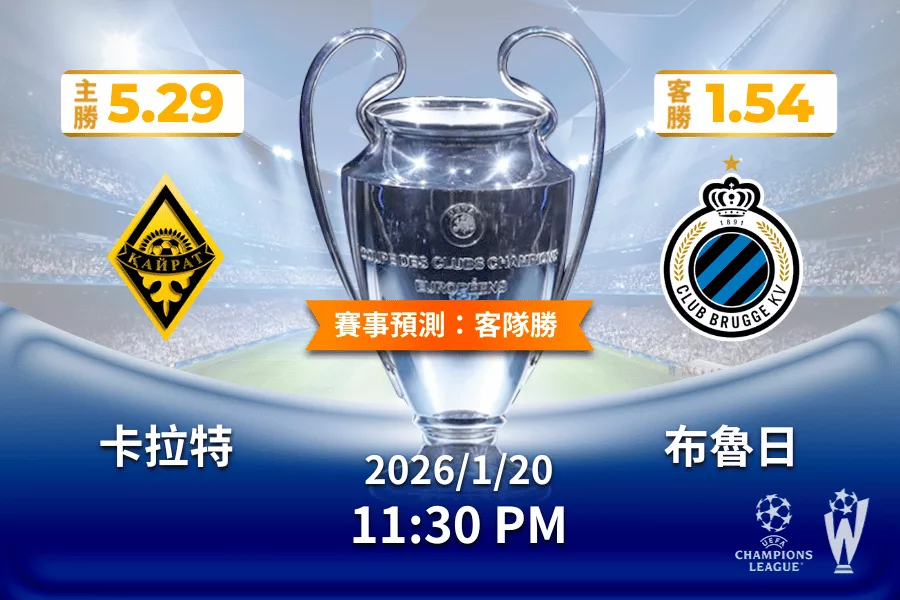 歐冠 | 卡拉特 vs 布魯日 01月20日