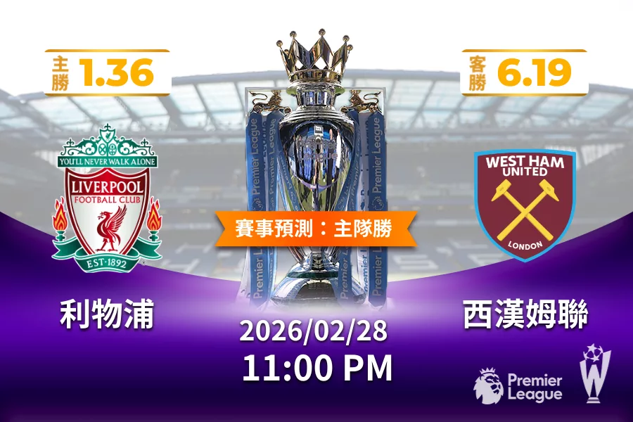 英超 運彩分析與預測》利物浦 vs 西漢姆聯 2026年02月28日 23:00