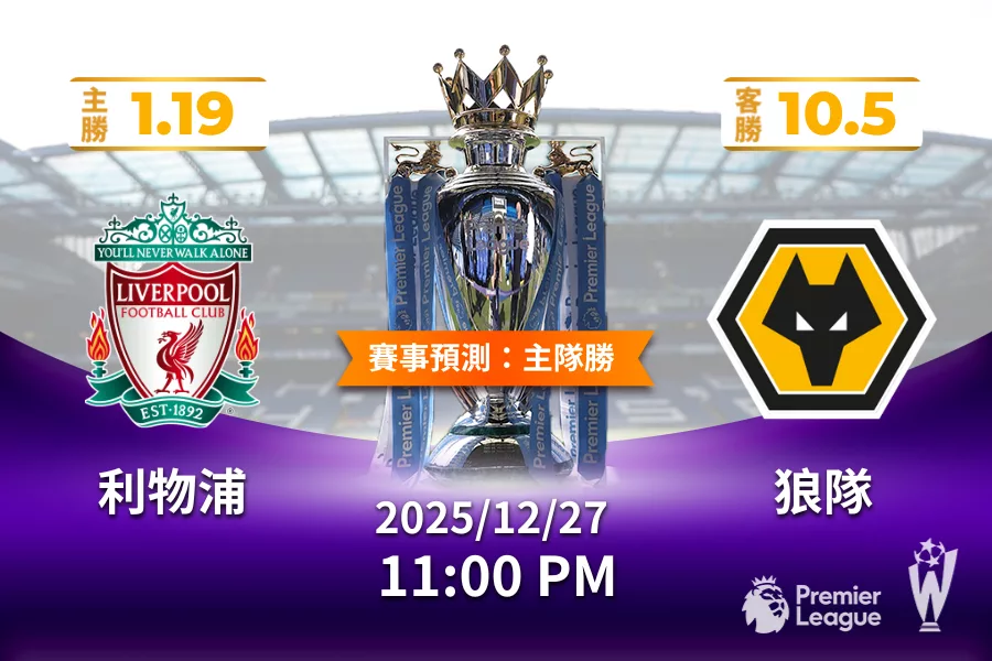 英超 | 利物浦 vs 狼隊 2025 年 12 月 27 日