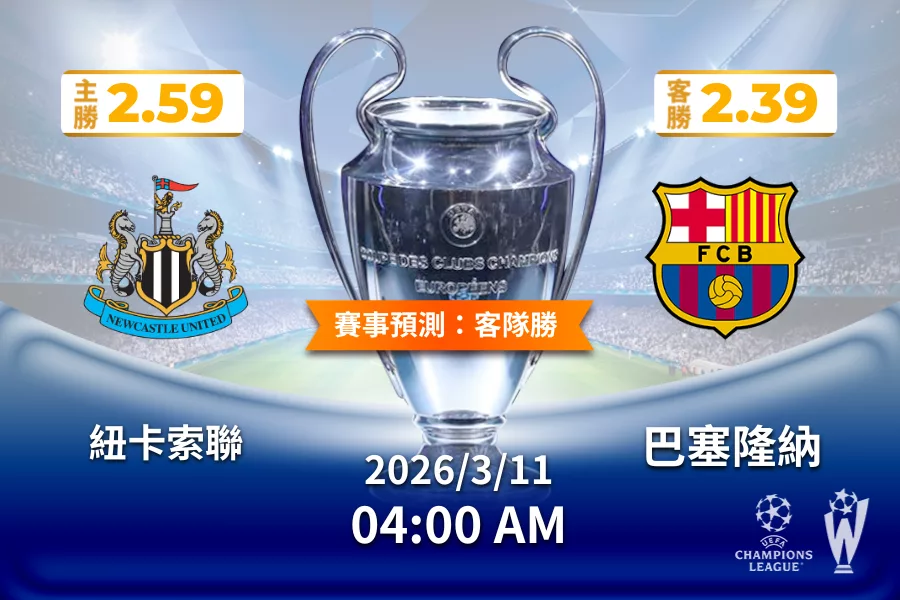 2026年03月-11日-歐冠-紐卡索聯-vs-巴塞隆納-賠率