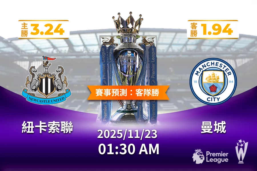 英超 | 紐卡索聯 vs 曼城 2025 年 11 月 23 日