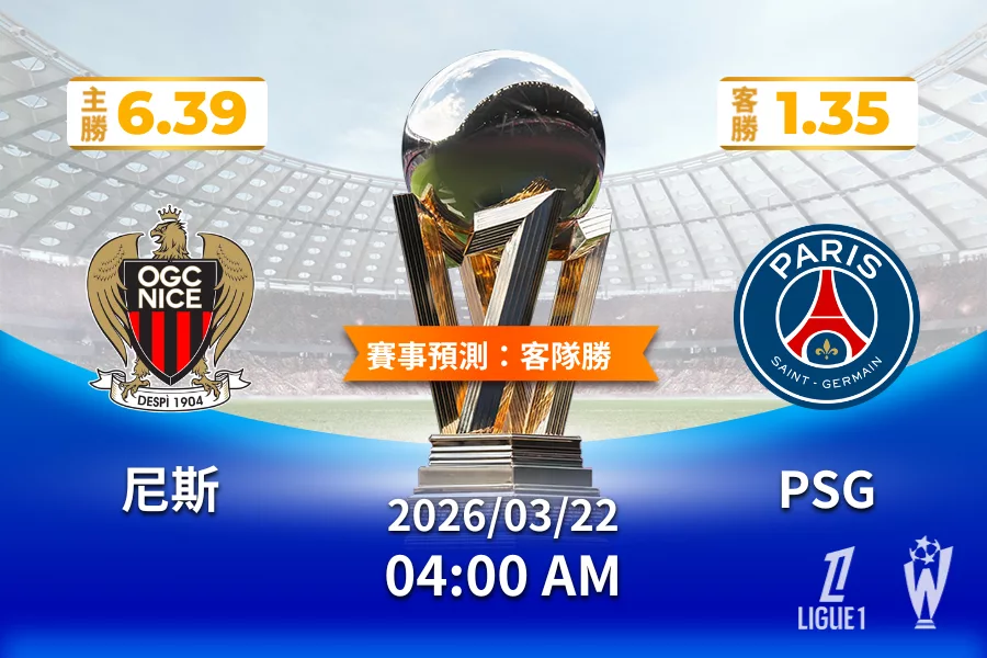法甲 運彩分析與預測》尼斯 vs 巴黎聖日耳曼 2026年03月22日 04:00
