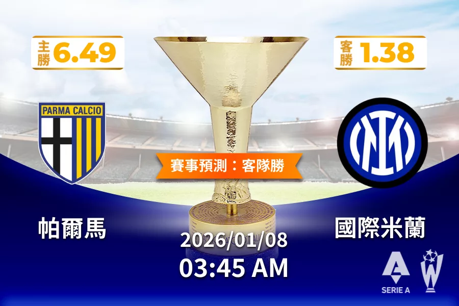 義甲 運彩分析與預測》帕爾馬 vs 國際米蘭 2026 年 01 月 08 日 03:45