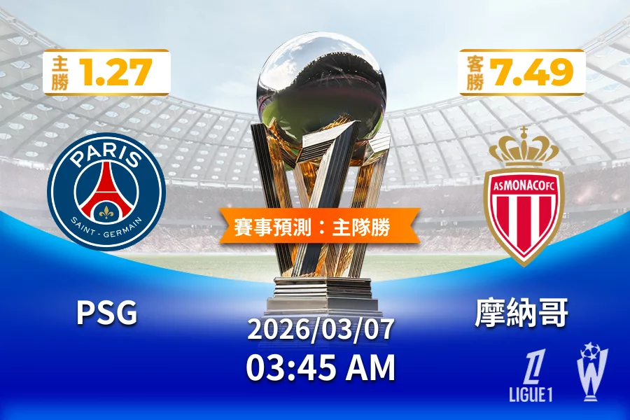 2026年03月 07日 法甲 PSG vs 摩納哥 賠率