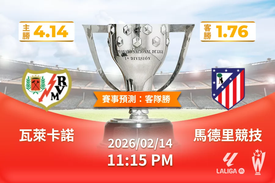 西甲 | 瓦萊卡諾 vs 馬德里競技 2026 年 02 月 15 日