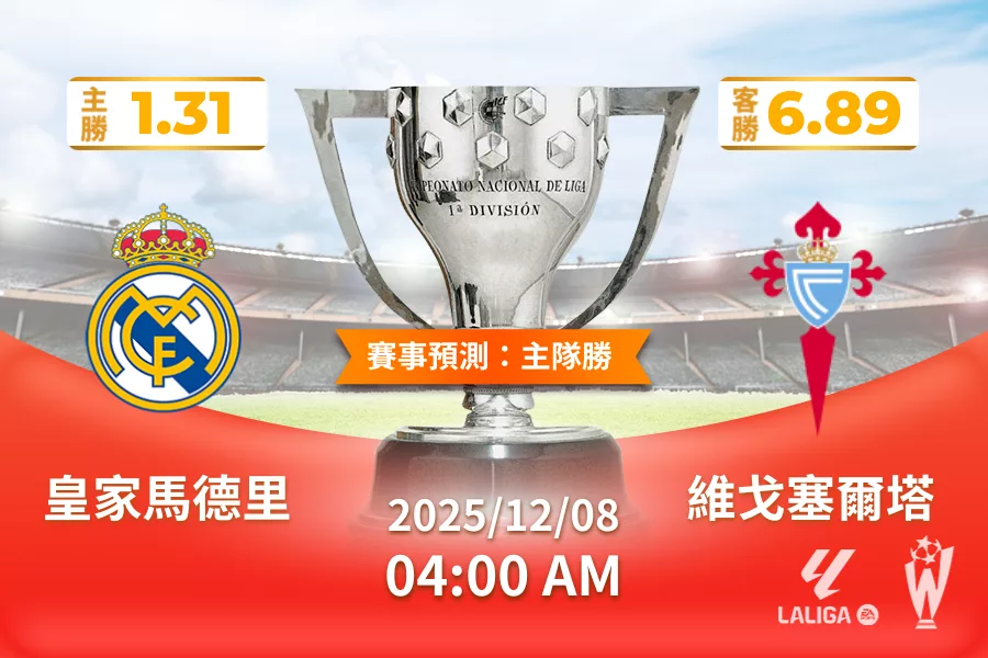 2025年12月 08日 西甲 皇家馬德里 vs 維戈塞爾塔 賠率