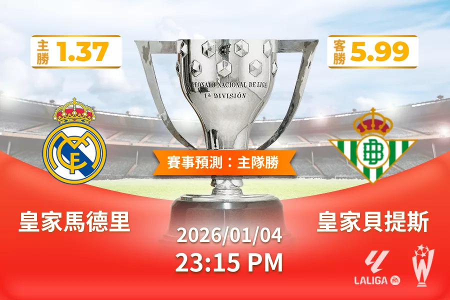 西甲 | 皇家馬德里 vs 皇家貝提斯 2026 年 01 月 04 日