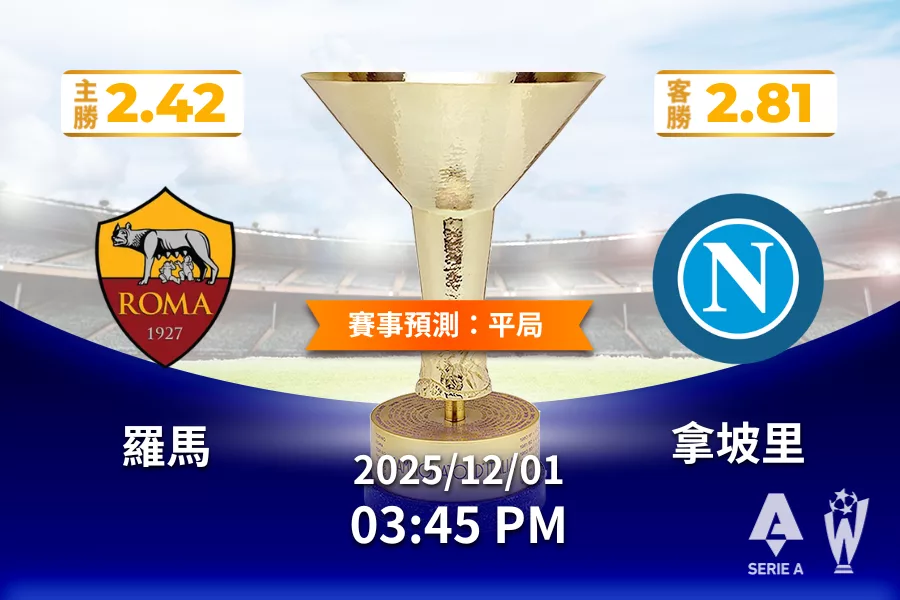 2025年12月 01日 義甲 羅馬 vs 拿坡里 賠率