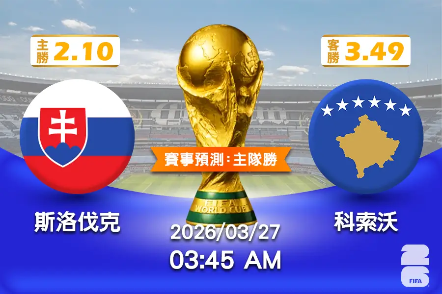 斯洛伐克與科索沃在歐洲賽場的直接對決紀錄有限,兩隊分屬不同小組,正式交手機會相對稀少。從本屆資格賽的整體表現來看,兩隊均是在各自小組令強隊感到頭痛的對手——斯洛伐克主場2-0擊敗德國,科索沃兩度擊敗瑞典,雙方均有製造冷門的前科。這場附加賽的緊湊程度幾乎可以預期,市場科索沃受讓+0.5/1低賠率相當準確地反映了比賽的競爭性。