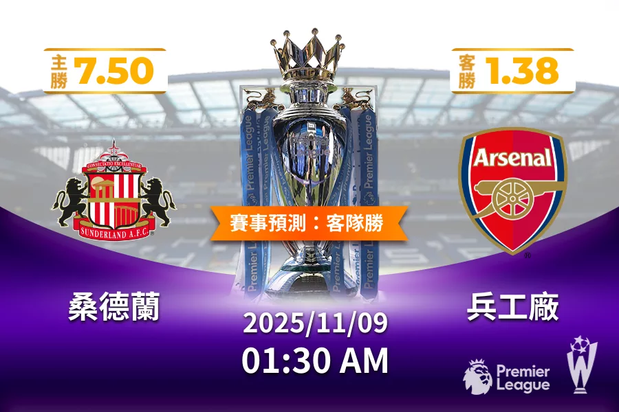 英超 | 桑德蘭 vs 兵工廠 2025 年 11 月 09 日
