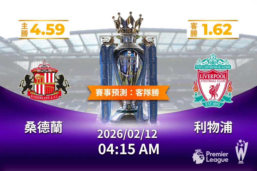 英超 | 桑德蘭 vs 利物浦 2026 年 02 月 12 日